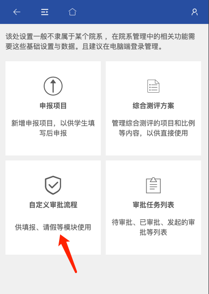 点击”自定义审批流程”项: