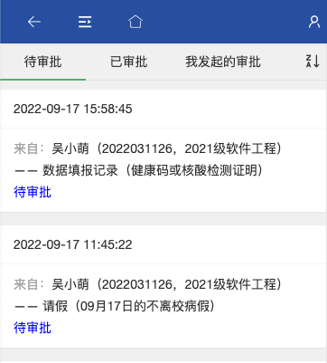 目前数据填报、请假、奖惩都模块均已加入统一审批系统。